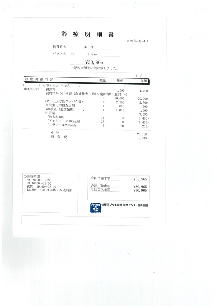 こちらの子に関しては 年齢もおおよそしかわからず きっと一生我が家で過ごすとは思っておりますが 保険が未加入でした。