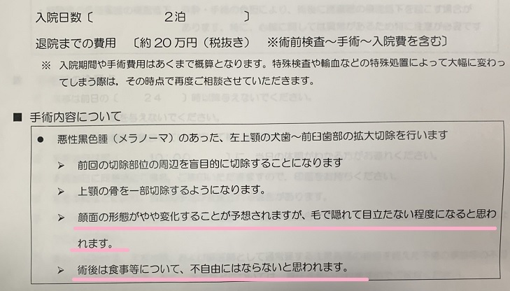 口腔内悪性黒色腫(メラノーマ)であったこと。 2回目の手術はその
