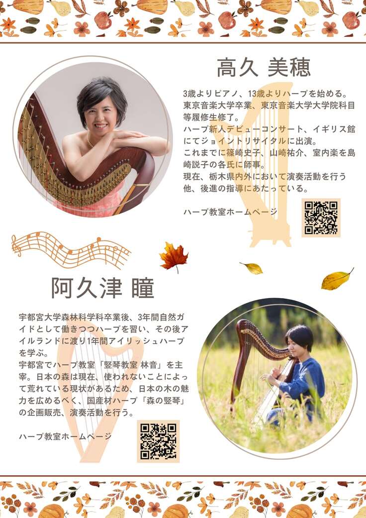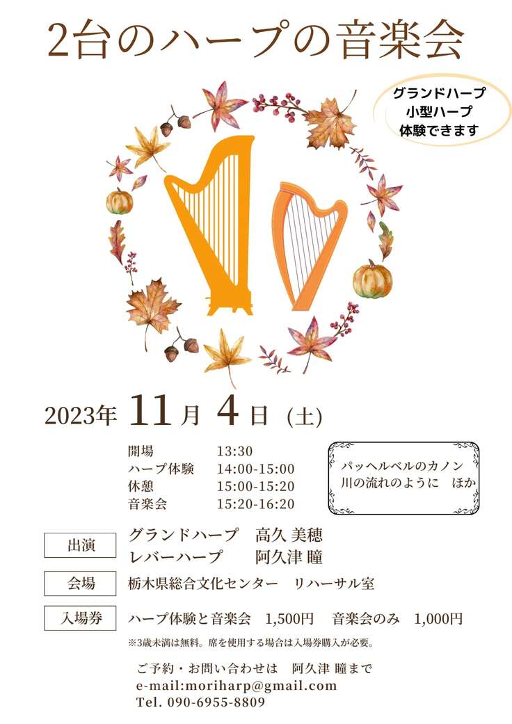 今週末11月4日は、私が22歳から3年間ハープを教えていただいた、グランドハープ奏者の高久美穂先生とコラボコンサートです