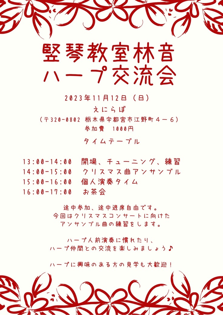 11月12日は私が主宰するハープ教室竪琴教室林音の交流会です