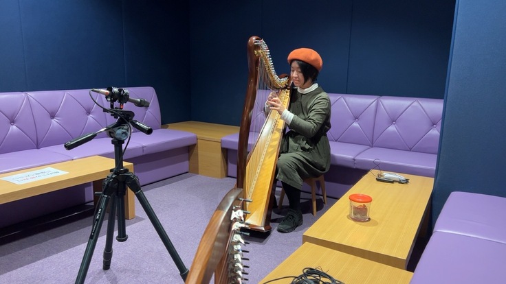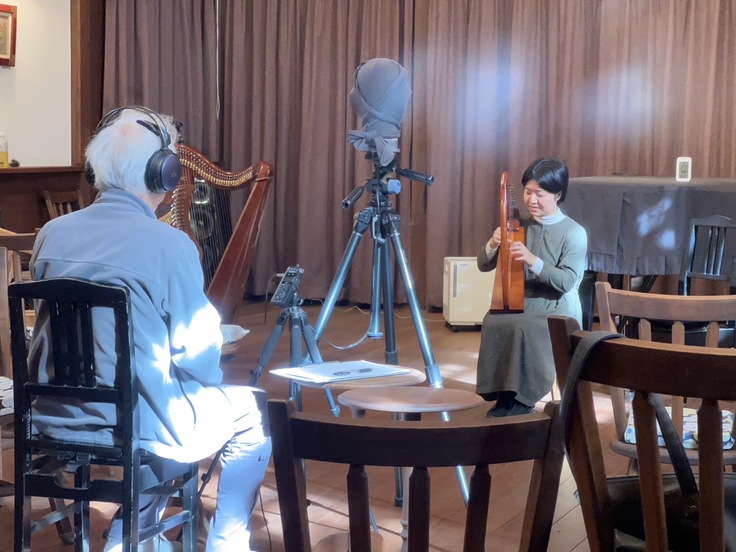 飯村さんが、ハープ音源と調和する、とても素敵な自然音を合わせてくださいました。