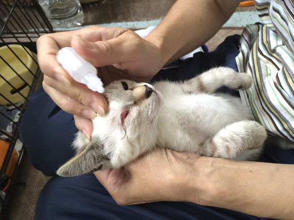 (保護した猫たちは病気の仔も多く定期的なケアが必要)