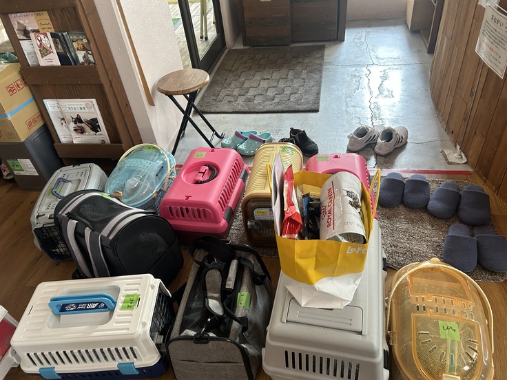 みんにゃをキャリーに入れ、ボランティアさんにしっぽのおうちともりねこ診療所へと送り届けていただきました。