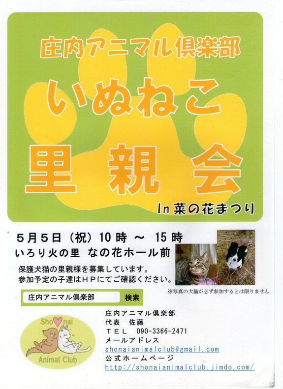 詳しくは、庄内アニマル倶楽部HPやフェイスブックページにて更新して参りますので