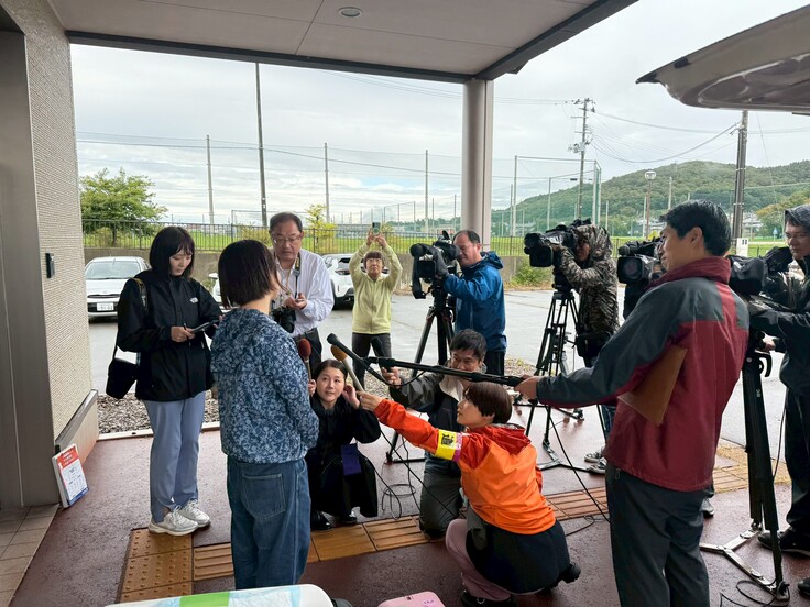 大雨と強風にさらされつつ、事前の連絡ミスで会場の水が出ないトラブルもありてんやわんやの中、大勢の報道取材に囲まれ、、、
