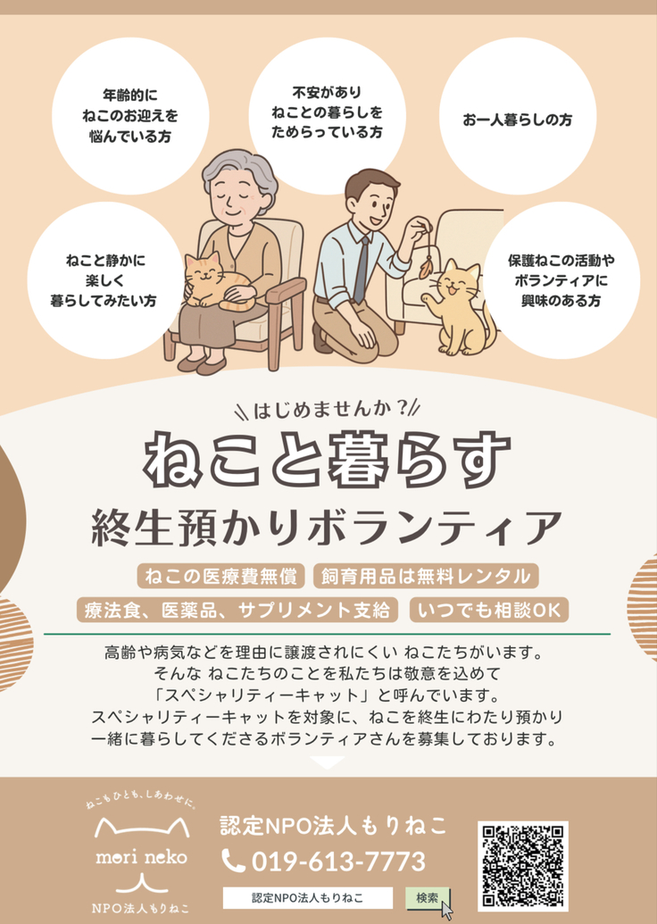 もりねこの終生預かりボランティア制度の特徴としまして
