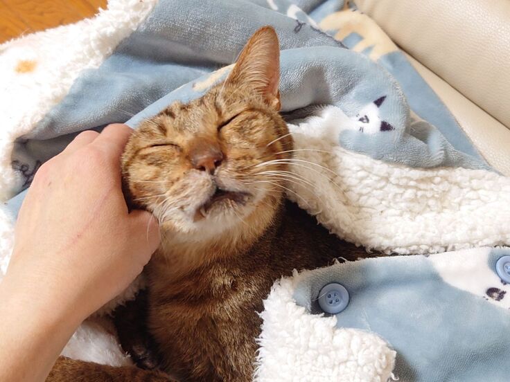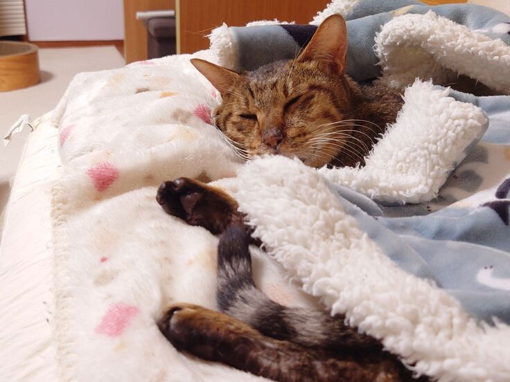 ふかふかの毛布で赤ちゃんのように甘えています。