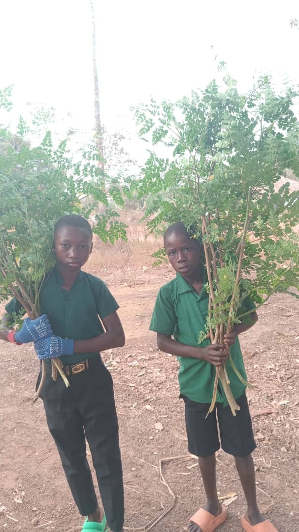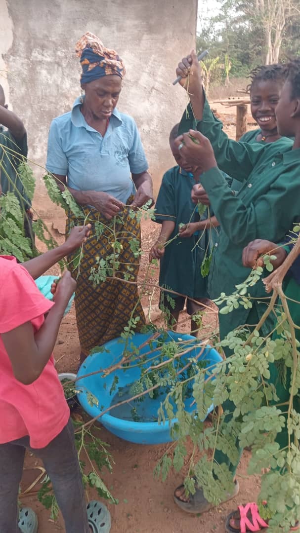 今、シエラレオネは、乾期の真っ最中で約6か月間、全く雨が降りません。モリンガ・スクールガーデンもモリンガの葉の収穫がかなり厳しくなります。そこで、乾季でも水遣りが簡単にできるしくみとして、2023年8月から始めた児童が一人1本のモリンガを自宅で育てる「マイ・モリンガ」の活動。今年の乾季は、自宅で大きく育った「マイ・モリンガ」を、児童たちが自宅から持って来て、給食に提供できるようになりました。5年間試行錯誤しましたが、ようやく地元の方々だけで持続可能なモリンガを活用した栄養改善のしくみができてきたように思います。