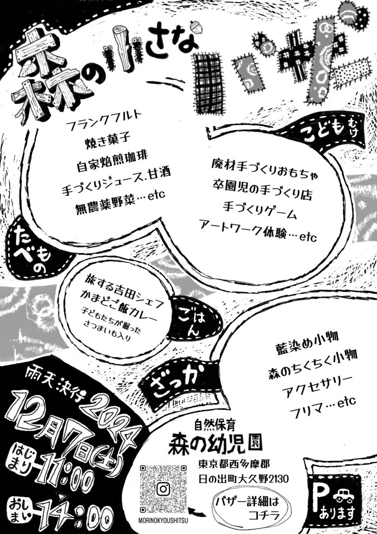他にも、クラウドファンディングでもご支援いただいた旅するシェフ吉田さんのカレーをはじめいくつかの食べ物や、お母さんたちの心のこもった手作りお菓子に小物、アートのワークショップ、卒園した園児たちが出す子ども店など子どもから大人まで楽しめるお店がでます。