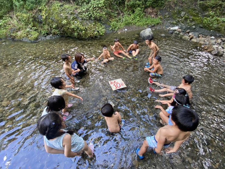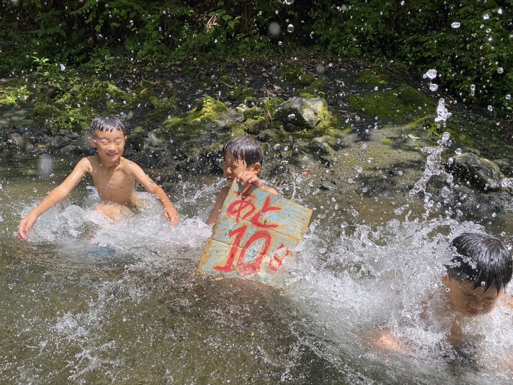 1ヶ月ぶりに園の川に水が戻ってきてくれたので