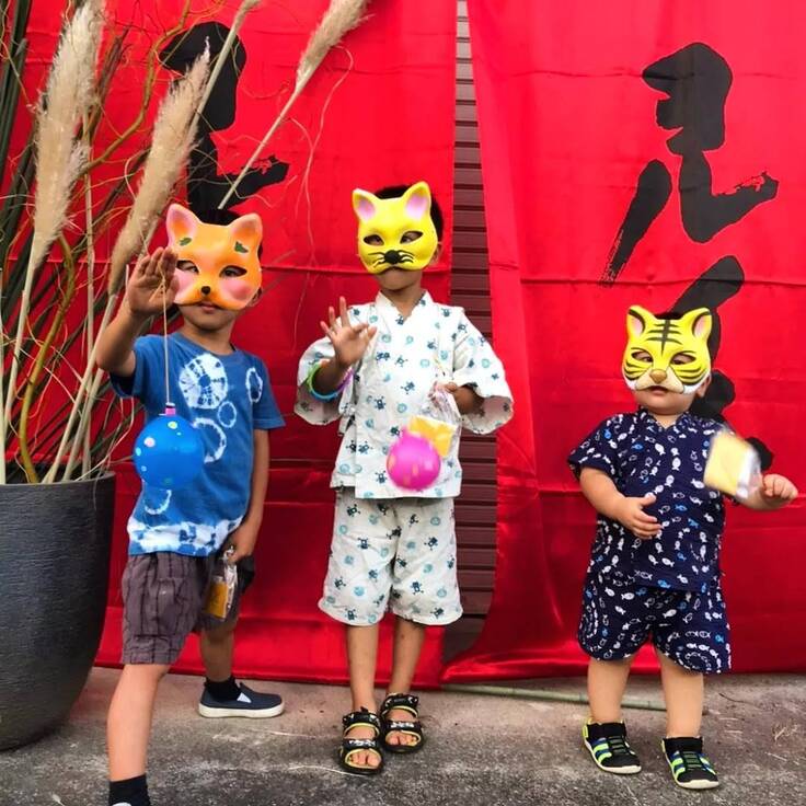 浴衣で参加した森の母たち