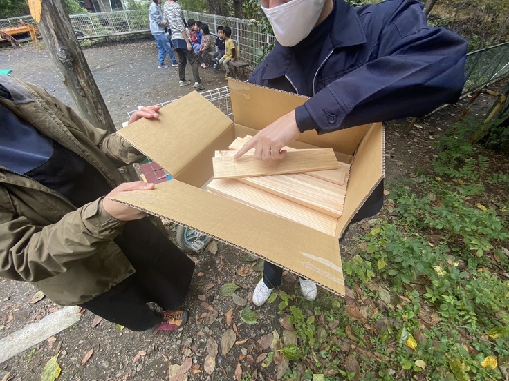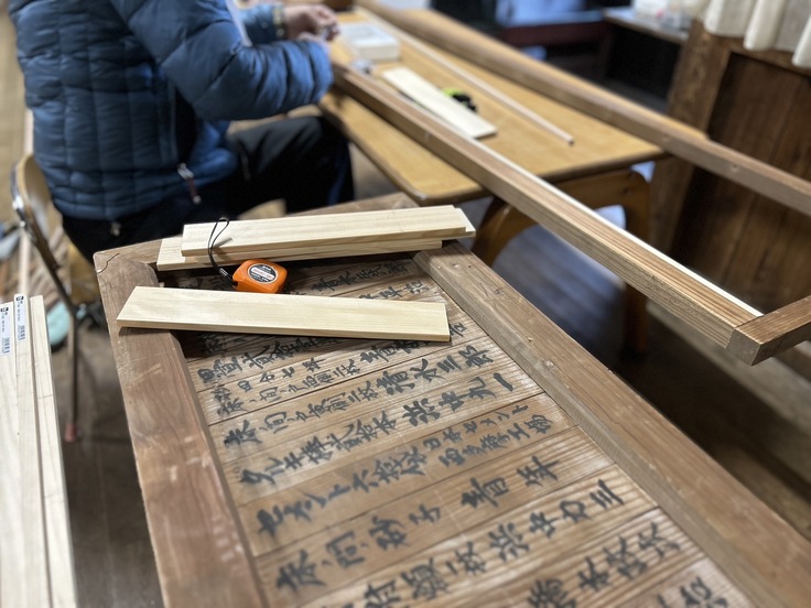 木札はご近所の木材屋さんからのご寄付を頂きました。