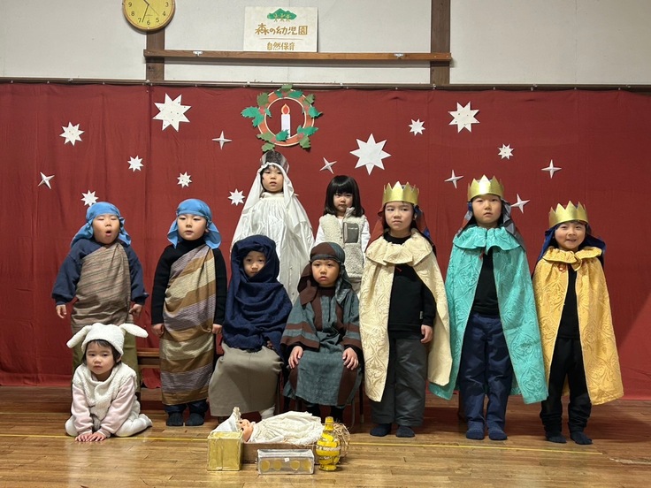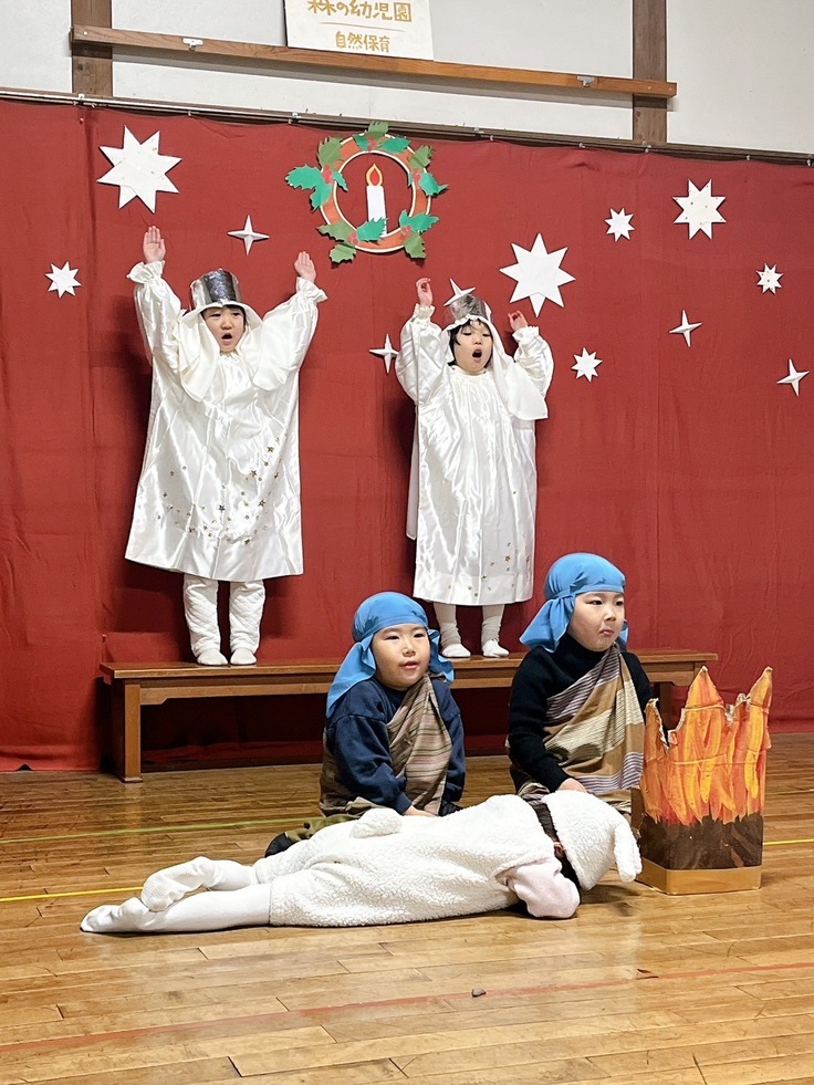 2歳児クラスの子が立派に始めの挨拶をしてくれ、その後は歌やダンス、そして毎年恒例の生誕劇へ。