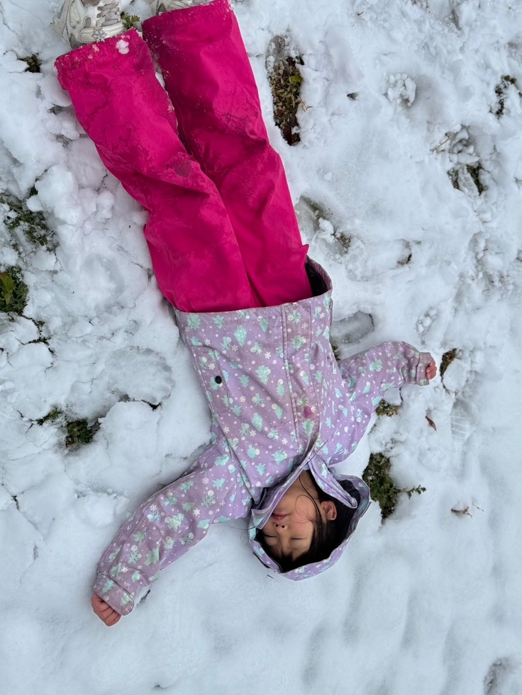 そこで子どもたちは、まだ雪が残る場所を求めてお散歩へ!原っぱにはたくさんの雪が残っており、大喜びで雪遊びを楽しみました。