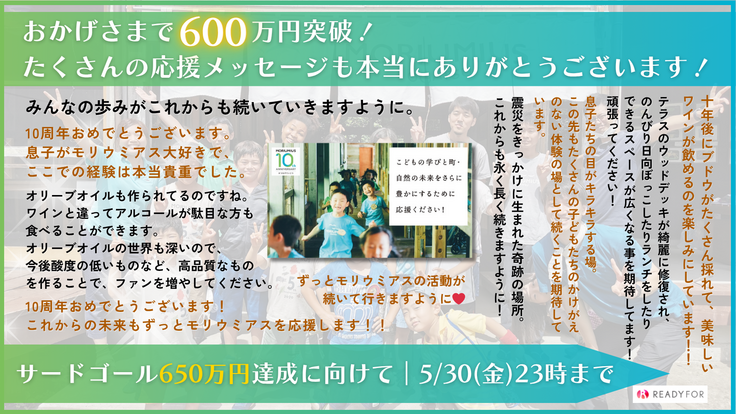 皆様からのご支援のおかげで、ネクストゴール600万円も達成することができました!改めて、ご支援いただいた皆様に感謝申し上げます。