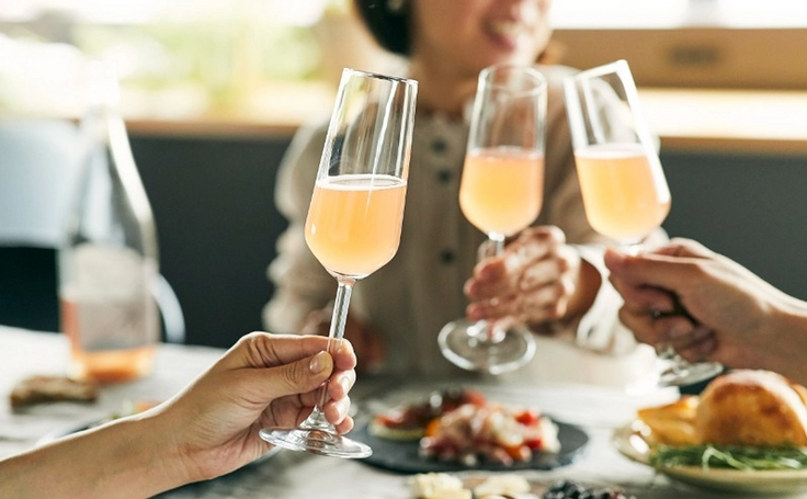 2023花明は、鮮やかなルビーの輝き、細かく綺麗な泡立ちのロゼスパークリングワインです。