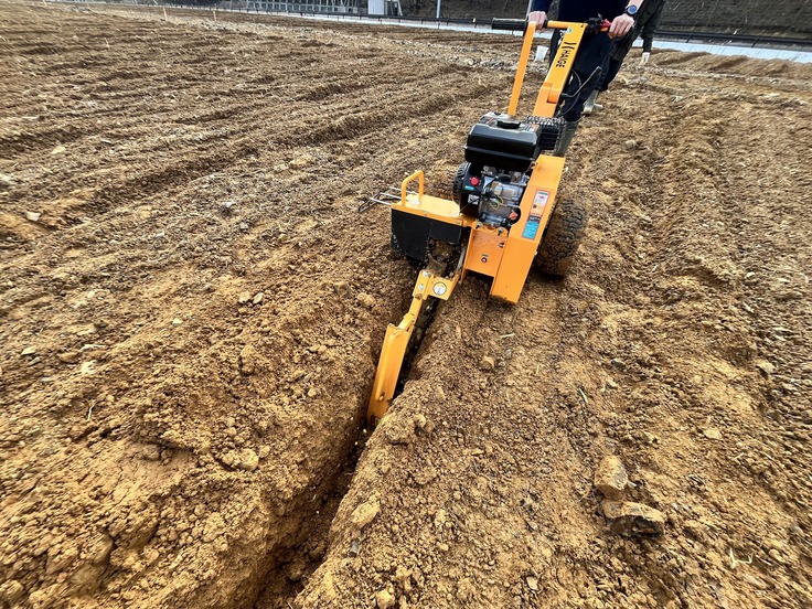 秋からは水捌けをよくする為に、暗渠という水道を掘り始めました。幅10センチ、深さ50センチの溝をトレンチャーという機械を購入して掘り、砂利や排水パイプ、砂を使って雨水が浸透して畑の外に流れ出す仕組みです。多くの人が集まり450メートルの暗渠が完成しました。その後、シャベルでより幅の広い溝を掘り、砂利と排水パイプに加えて、竹炭、木・竹の枝を入れることで水捌けだけでなく、微生物が集まり土壌を改良し、ぶどうの根が伸びやすい環境をつくっています。