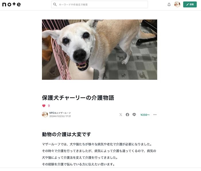 タイトルは「保護犬チャーリーの介護物語」。