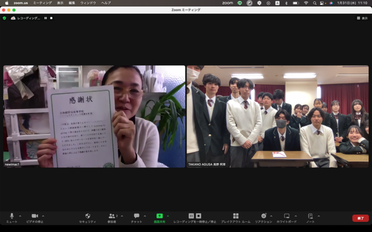寄付先の候補3つの中に選んでいただいただけでもとても嬉しかったのですが、実際にオンラインでプレゼンを行い質疑応答の時間もいただいて、生徒さん達と触れ合うことができ、とても真剣に向かい合っている生徒さん達に感銘を覚えました。