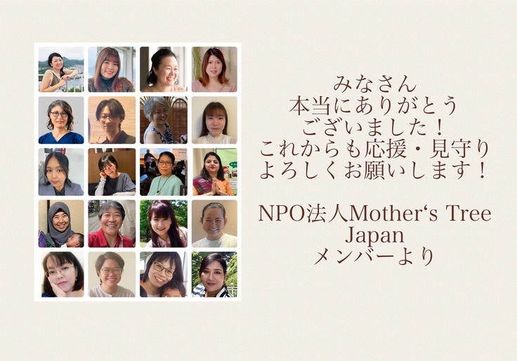 どうぞこれからも、NPO法人Mother‘s Tree Japanの活動の温かい見守りと応援をよろしくお願いいたします。