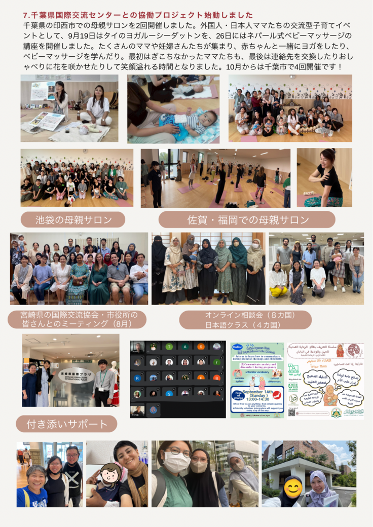 全国の母親サロン、オンライン相談、日本語クラス、病院付き添いなど、多くのお母さんと赤ちゃんに寄り添う時間を重ねてくることができました。