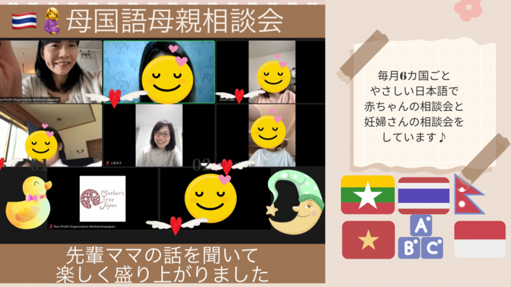 設立直後からコロナ禍となり、オンライン母親教室や相談会を開催したり、お産や産後健診に役立つ指差しボード(10ヶ国語)の開発や、LINEによる母国語相談、情報提供をメインに活動し、全国の在日外国人女性をサポートしてきました。
