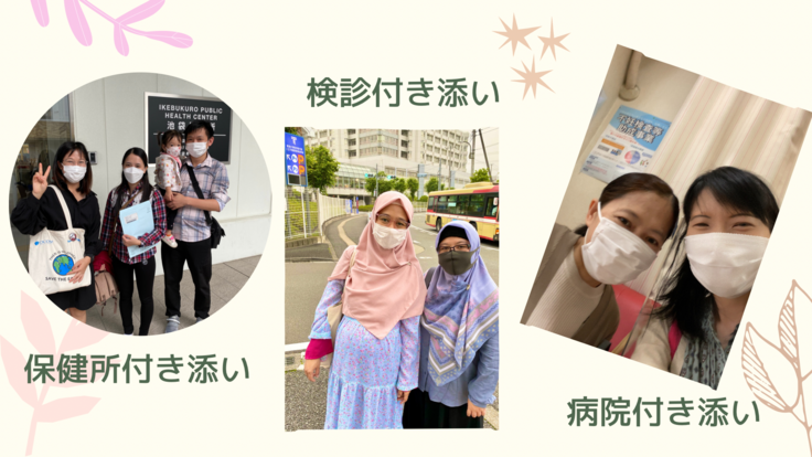 具体的な活動としては、保健所・病院への付き添いや、オンライン母親教室や相談会の開催、LINEによる母国語相談・情報提供など、オンライン・リアル問わずに活動しています。