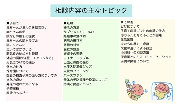 時には難民申請中の方やオーバーステイ、技能実習生からの妊娠のご相談もあり、そのサポートにもあたりました。弁護士さんや地域の保健師さん、大学の先生方のお力もお借りしながらサポートする中で、様々な事情を抱えながらも新しい命を無事に産もうと懸命に頑張るママたちの姿に、たくさんのものを教わりました。