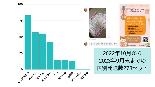 昨年10月から今年9月末までに外国人ママの手元に届いたお産セットの数は273セットを超えました!