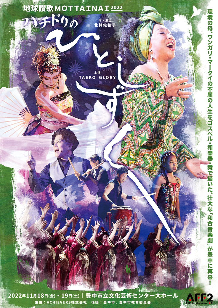 日本の「もったいない」精神を世界に広め、環境分野で初のノーベル平和賞を受賞したSDGsのパイオニア、ワンガリ・マータイさんの半生を、国連の提唱するSDGsの理念と共に、歌やダンスの力をもって力強く観客に訴えかける作品です。