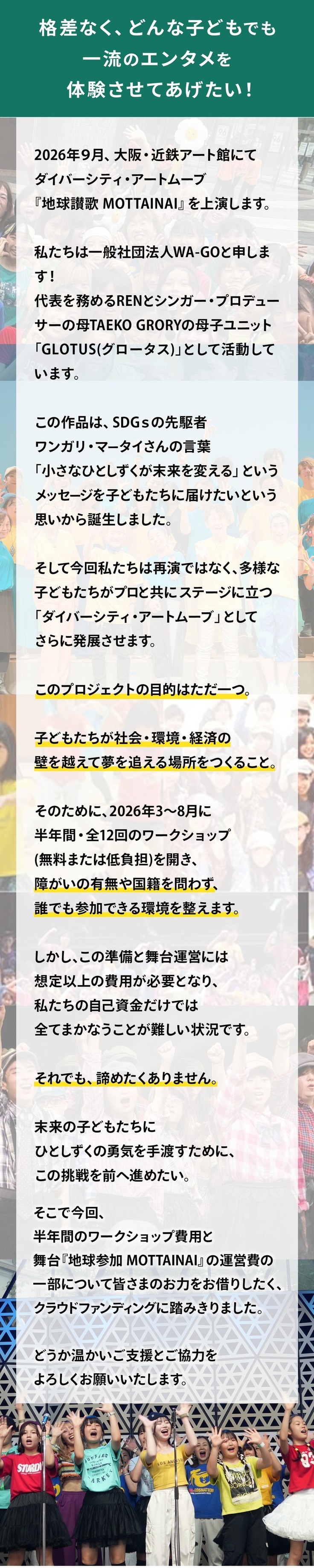 格差なんてモッタイナイ!全ての子どもに一流のエンタメ体験を!