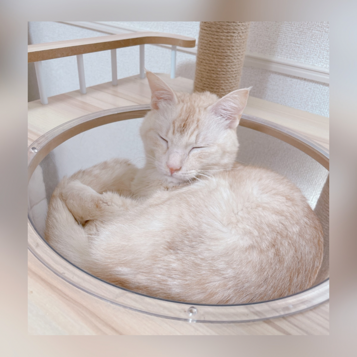 午前中はキャットタワーのお気に入りの場所でスヤスヤ寝ている時間が多かったです💤