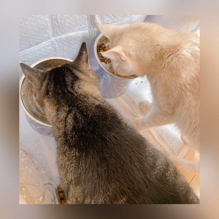 朝ごはんはいつもチュール派のくぅちゃんが、この日はなんとお兄ちゃん猫と一緒にウェットフードを食べてくれました!