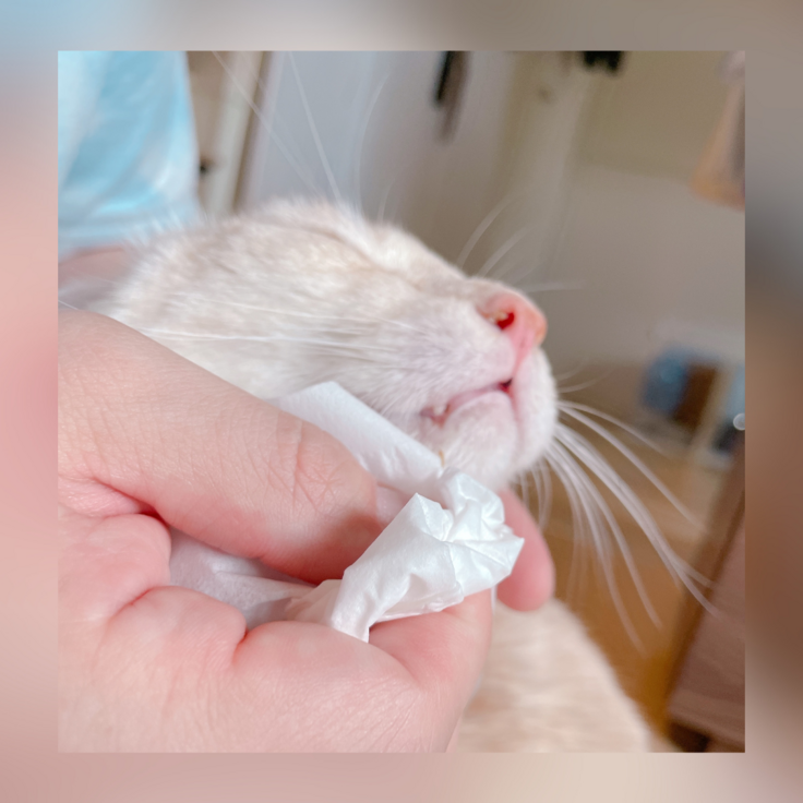 鼻水が少し出てしまったので、そっとティッシュで拭き取りました💦