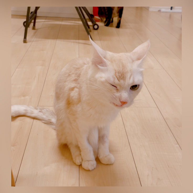 朝6時ごろ、普段とは違う鳴き方で起こされ、見に行くと右目だけがパチパチと瞬きを繰り返し、よだれが止まらなくなっていました。