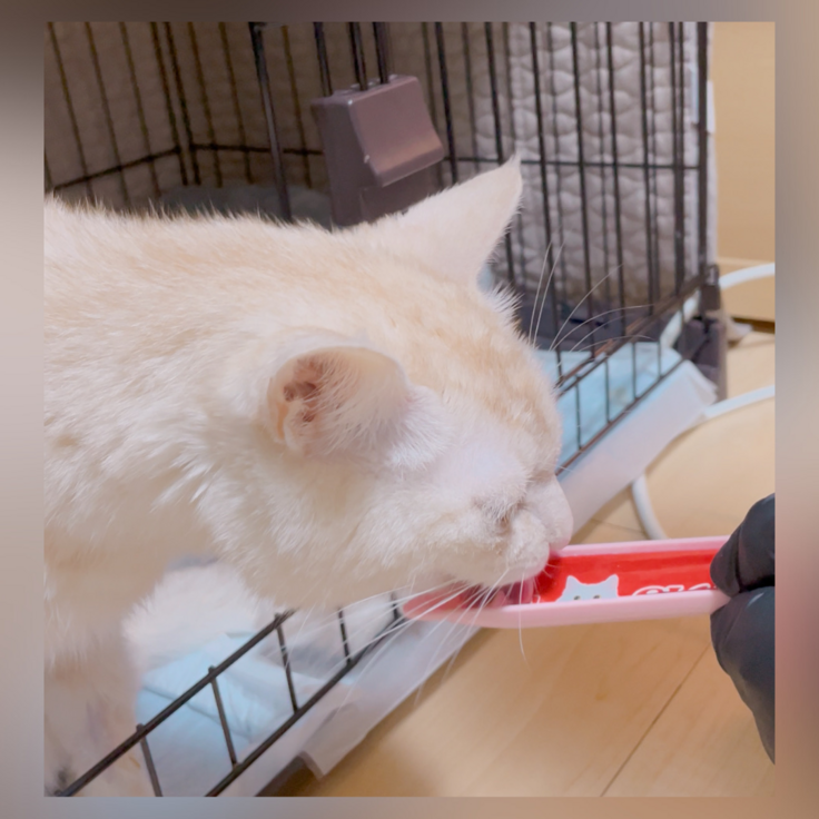 おうちに帰ってからも、ゲージの中でびっくりするくらい勢いよくご飯を食べてくれた姿に、思わず涙があふれました。