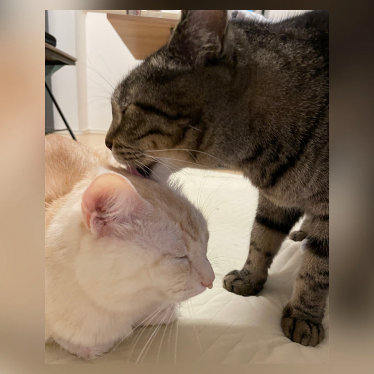 くぅちゃんの体調が良くないことを察してか、ノア(お兄ちゃん)が何度も優しく毛づくろいをしてくれました。