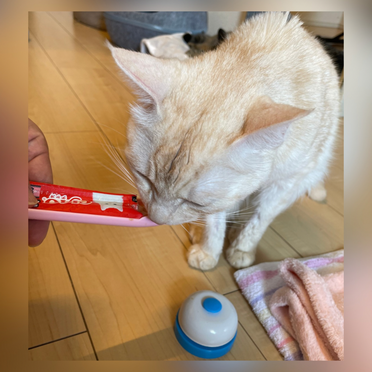 帰宅後、チュールを元気に食べてくれ、その姿に心から安堵しました。