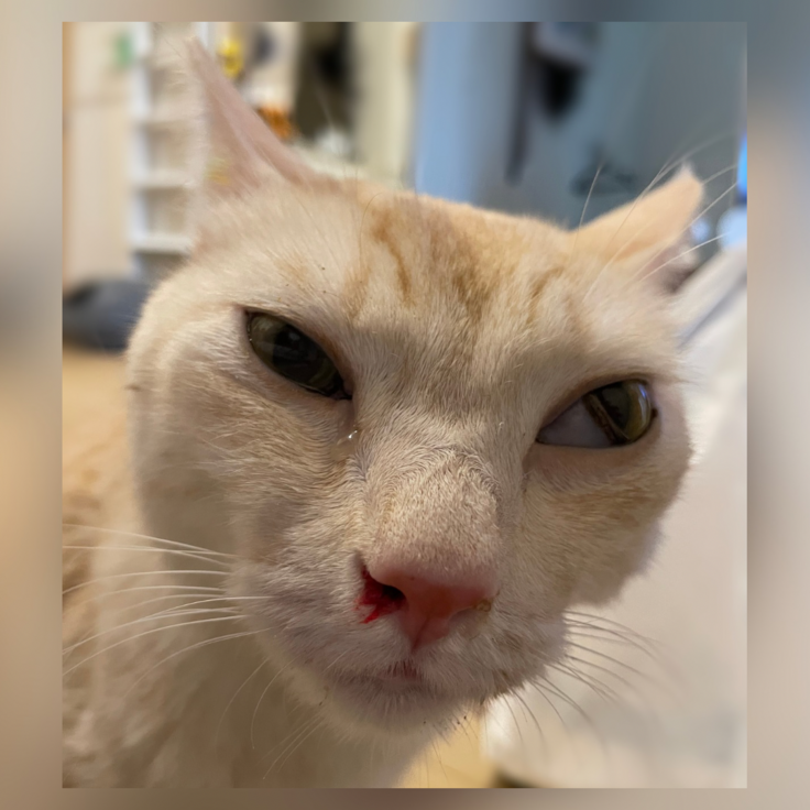 日中はチュールをたくさん食べてくれて、甘えん坊モードの時間もありました。膝の上に乗ってきてくれた瞬間、「今だ!」とカピカピになった鼻水をしっぽや手からそっと拭こうとしたのですが…途中で気づかれてしまい、すぐに逃走されました😭