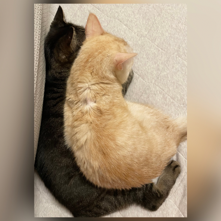 最近ますます甘えん坊なくぅちゃん。今日は、お兄ちゃん猫のノアにめり込む勢いでグイグイ近づいていきました🤣