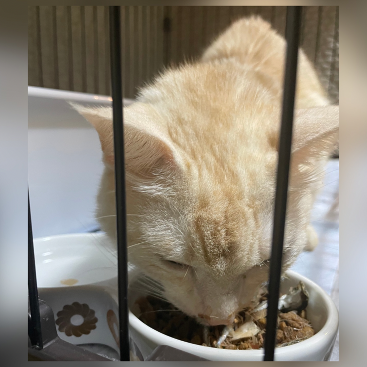 ゲージの中にご飯を入れると、すごい勢いでハグハグカリカリご飯を食べてくれました👏