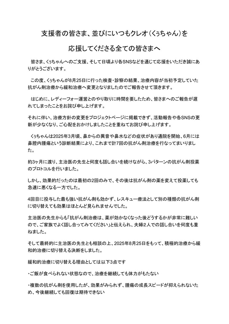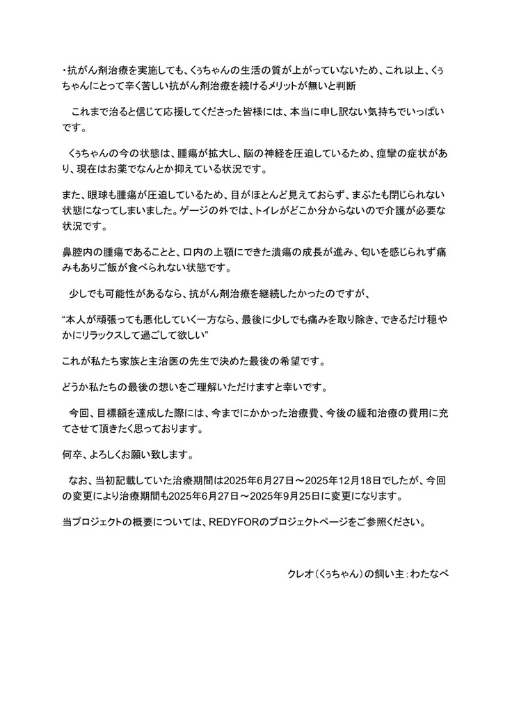 至急『猫の気管内リンパ腫』リエル君の治療費ご支援お願いいたします。