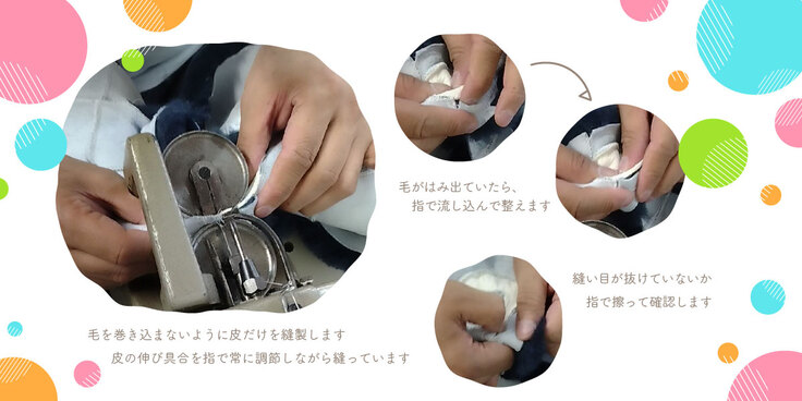 毛皮専用のミシンで、一般的なものより縫う力も布を引っ張る力も強いパワー系です。