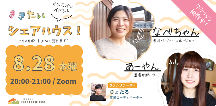 8月28日シェアハウスのスタッフによるオンラインイベントがあります!
