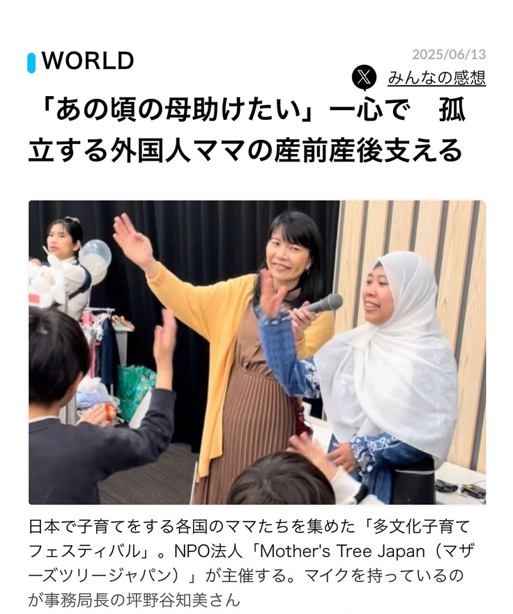 そんな最終日に、朝日新聞with news でNPO法人Mother’s Tree Japanこ外国人母子支援の取り組みが特集され、みなさまに記事をご紹介できることを大変嬉しく思っております。