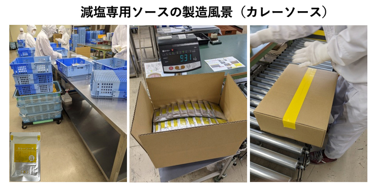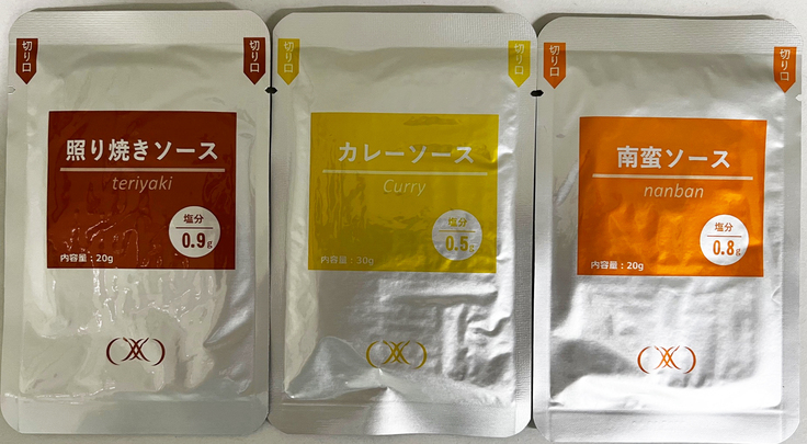 追加製造した3種(照り焼き、カレー、南蛮)の減塩システム専用ソースは、以前、試験販売(小ロット生産)で提供した際に、とても好評でした。今回は、各ソース約10,000袋を生産できました。