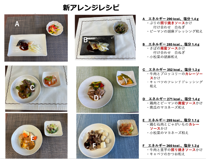3種の減塩システム専用ソースを使用してアレンジレシピを作成しました。現在、提供中のソース5種(デミグラ、クリーム、味噌だれ、ピリ辛、トマト)へ新たに3種が加わり、「無限レシピ」に近づきました。販売中の減塩システムセットの冷凍食材との組み合わせでアレンジレシピを作成しました。