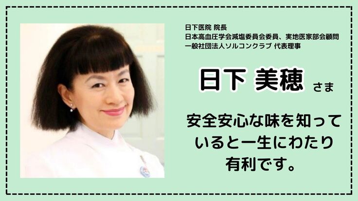 この国と子どもの未来の幸せのために、日本の食の弱点である高食塩食を改善し、国民病である高血圧や認知症などの生活習慣病を予防して医療費削減にも繋がるように、美味しく楽しくスマートな減塩を提唱。コロナ時代の今こそ減塩が重要であると警鐘を鳴らす。