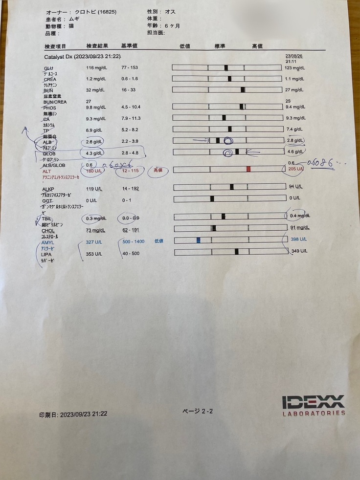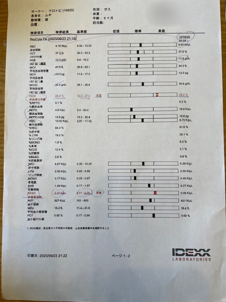 血液検査はとりあえず院内検査だけ結果を聞いて、院外検査は後日連絡いただくことに。