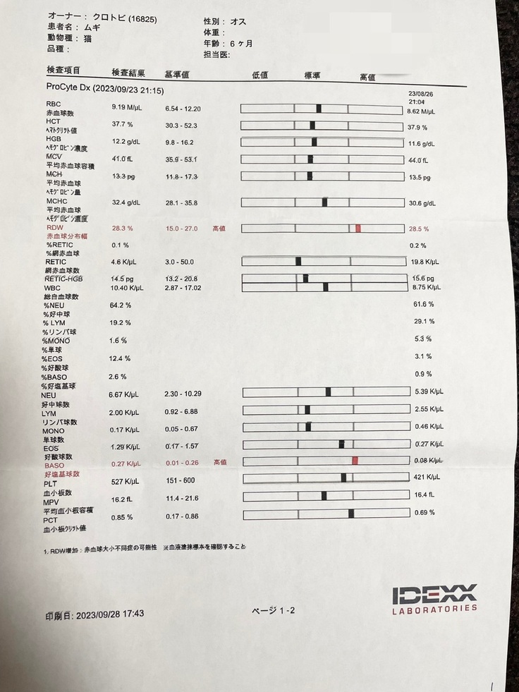 これをもとに、先程先生がお電話くださり結果を伺いました。